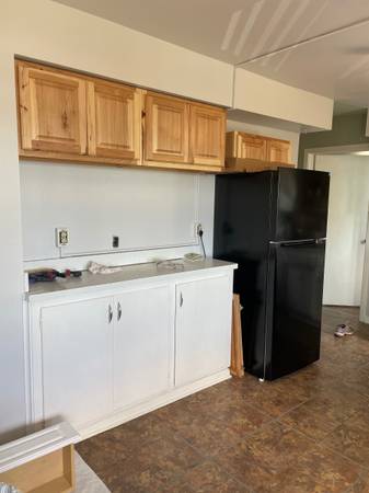 Additional rough Hickory cabinets are being added to the kitchen for more storage. Updated appliances, not pictured.