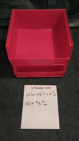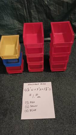 Organize your garage, shop, hobby room, crafting stuff, etc. with stackable bins or plastic contaniers with lids!! I have lots of options for you to get organized. Many different sizes and styles. There are many more of each container than what is shown in the pictures. The pictures pretty much will answer all your questions, or if not feel free to call/text/make an offer.