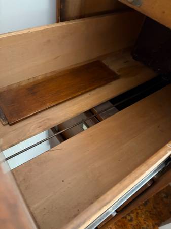 Except for the missing drawer the cabinet is in great condition. 53" H 27" D 18" W I believe the third drawer is actually for the bottom slot.
