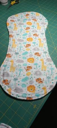 Handmade Flannel Baby Burp Cloths. They are made with 3 layers of Flannel. They are very soft & absorbent. These fit over your shoulder nicely. Approx size 20x9. I have several patterns available. $6.00 each. Buyer pays postage. Made in a smoke & pet free home.
