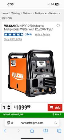 Vulcan omnipro 110/220 multiprocess welder with MiG, tig, stick and aluminum spool gun. Spool gun never opened, tig torch barely used. Have a pedal for the tig, cart goes with everything, bottles do not. 1000 obo, pick up in meadowlands mn. Text is best two 1 8 nine 2 9 zero one 25