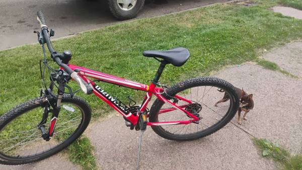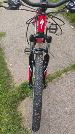Nice bike, 15.5" frame for riders 4'9"-5'4". Sram 21 speed x4 group set. Suntour suspension fork, powerful V brakes front and rear. Front derailleur is hard to shift but the rear 7 speeds shift well.