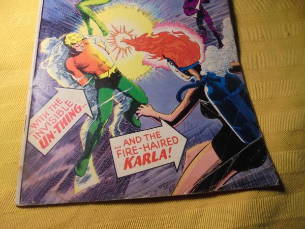Aquaman # 24 (Nov.-Dec.1966) sees the King of the Seven Seas, along with Aqualad, Mera and Aquababy take on a trio of Super-Villains: The Fisherman, The Un-Thing and Karla the Fire-Haired Woman, who are paid by an Alien Race to destroy the ocean with their constructs!! There is no credit for the Writer, but the Cover and interior Artwork were done by the great Nick Cardy!