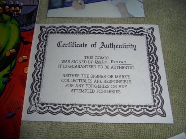 This is AUTOGRAPHED BY WRITER PETER DAVID AND ARTIST DALE KEOWN & was signed at a Comicon at the Jacob Javitz Center in New York City on Jan. 24, 1993 and Full-Color PHOTO of Dale Keown IS INCLUDED, TAKEN AT THE SHOW!!
