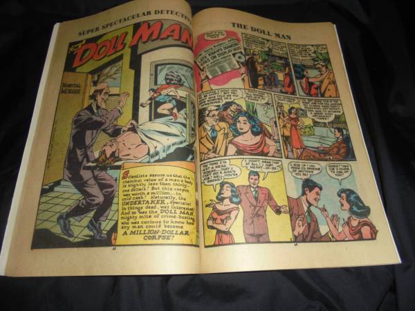 Doll Man stars in "A Million-Dollar Corpse!" by Writer William Woolfolk with Pencils and Inks by John Spranger, as the action takes place in the City Morgue as he takes on The Undertaker!