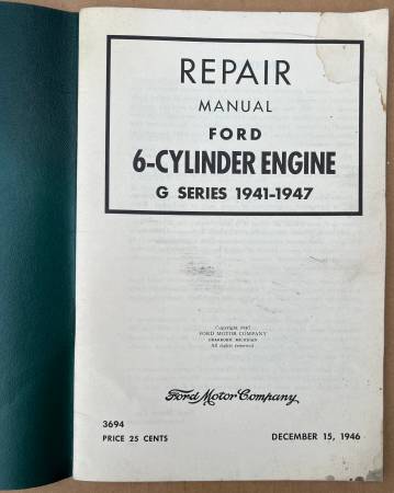 Repair manual for WWII vintage Ford 6-cylinder engines. A great addition to be displayed with your old ford; everything could be covered in 150 pages in those days.