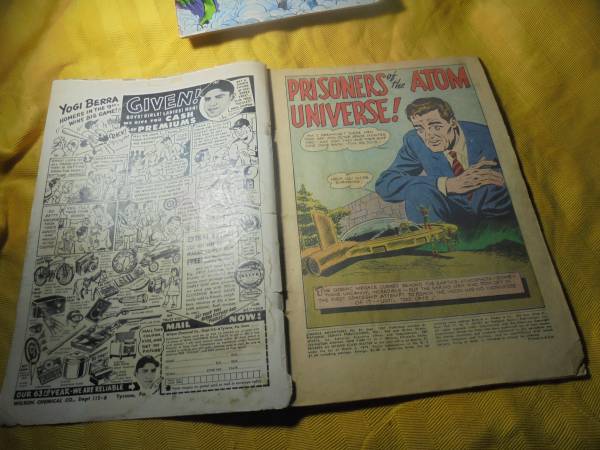 "Prisoners of the Atom Universe!" is by Writer John Broome, Penciled by Carmine Infantino and Inks by Bernard Sachs, as a Rocket Scientist sees a Manned Rocket take off into Space, then return miniaturized!