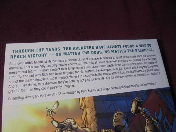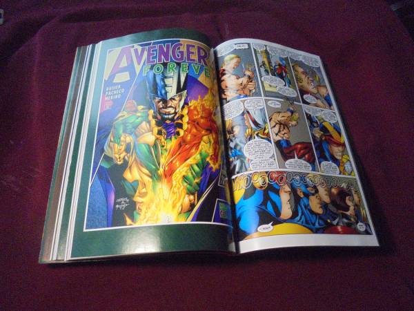 “Avengers Forever!” Through the years, the Avengers have always found a way to reach victory – no matter the odds, no matter the sacrifice…But now, Earth’s Mightiest Heroes face a different kind of menace. A menace so great, it has made allies out of sworn enemies. This seemingly unconquerable enemy is - the future! Seven time-lost Avengers – plucked from the past, present, and future – must protect their longtime ally Rick Jones from death at the hands of Immortus, the Master of Time. To find out why Rick has been targeted for elimination, the Avengers must join forces with Kang the Conqueror, one of the team’s deadliest, most implacable foes in a cosmic battle that stretches from the Old West to the End of Time. As they do so, they discover they’re fighting not just for one life, but for the very destiny of mankind – against greater Villains than they could possibly imagine! This collects Avengers Forever 1-12!!