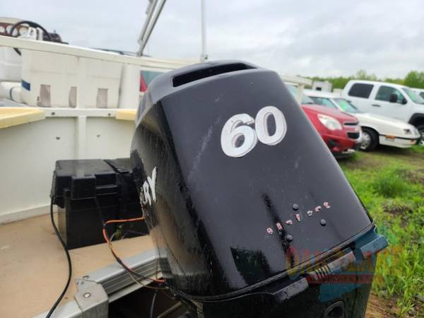 50 horse Mercury Bigfoot, 2 live wells, the entire console and seats were replaced about 2 years ago, added a new stereo and speakers last year.