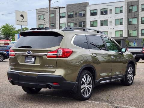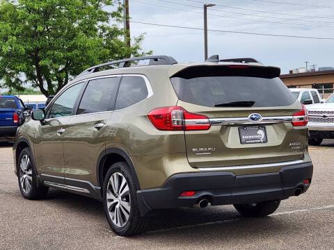 This vehicle is located at our Crystal location. This vehicle comes with a clean title. Elevate your family's adventures with the luxurious and capable 2022 Subaru Ascent Touring AWD 4dr SUV. Designed for comfort and confidence on every journey, this top-tier Ascent trim delivers a premium experience without sacrificing Subaru's legendary all-weather performance. Under the hood, a potent 2.4L H4 Turbocharger engine provides ample power for highway cruising and city driving, while still achieving an impressive 26 MPG on the highway. As the Touring model, this Ascent is loaded with features to make every trip a pleasure. You'll find heated and ventilated front seats, and second-row captain's chairs for exceptional passenger comfort. The panoramic power moonroof creates an airy and inviting cabin, perfect for enjoying sunshine weather. Stay connected and entertained with the advanced Starlink Multimedia Navigation system and a premium Harman Kardon sound system. Subaru's Symmetrical All-Wheel Drive system ensures tenacious grip and stability, no matter the road conditions, while an impressive 8.7 inches of ground clearance and X-mode with Hill Descent Control make light work of challenging terrain. With its generous cargo space and 5,000-pound towing capacity, the 2022 Ascent Touring is ready for everything from cross-country road trips to weekend excursions with gear. Packed with Subaru's EyeSight Driver Assist Technology, including features like adaptive cruise control and pre-collision braking, you'll drive with enhanced peace of mind. This 2022 Subaru Ascent Touring is the ultimate family SUV for those who demand refinement, capability, and unwavering safety.