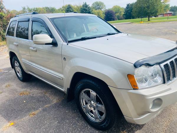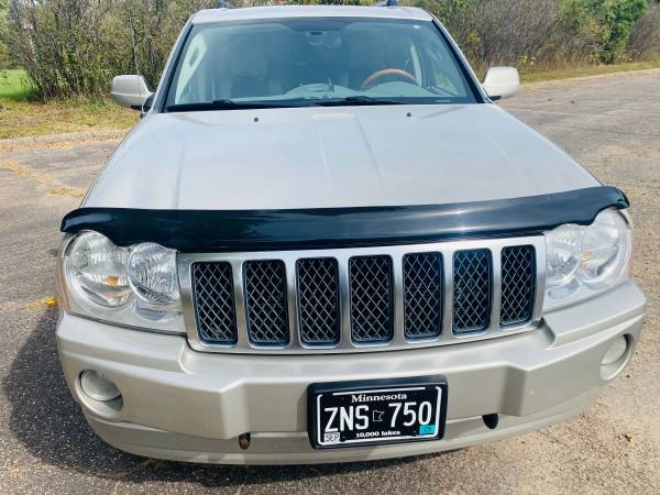 Super condition 2007 Jeep Grand Cherokee Overland 4x4. Pretty Silver, has all known options, including high output Hemi V8, very nice silver paint, molded mudflaps, heavy duty tow package, smoked side vent visiors, great tires, Navigation, power moonroof with sunshade, optional chrome wheels, only 142000 miles/ runs and drives BEAUTIFUL. I have a copy of the original window sticker showing equipment package. Cash only please. Please call 651-775-7284. Private party sale, No dealers please. Thank you for looking.