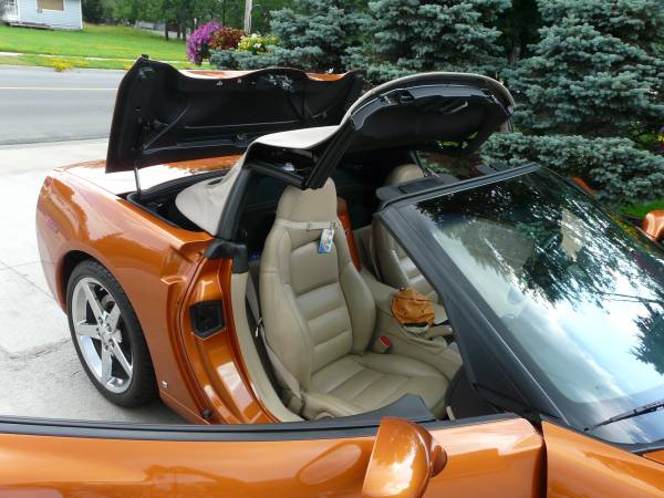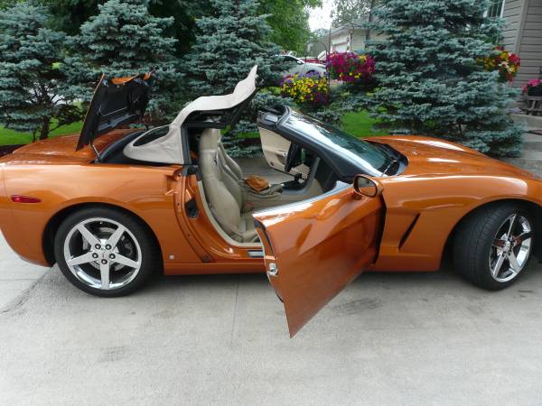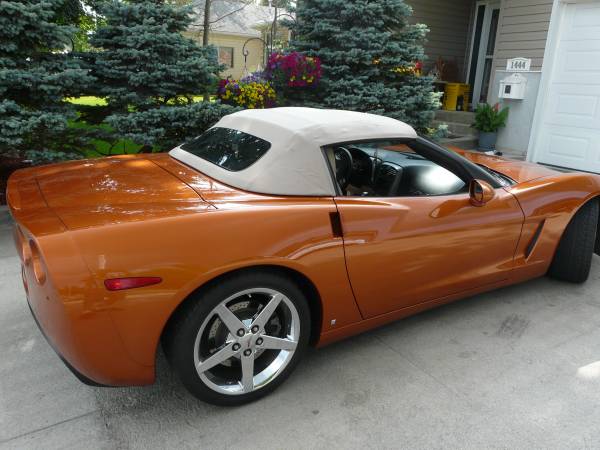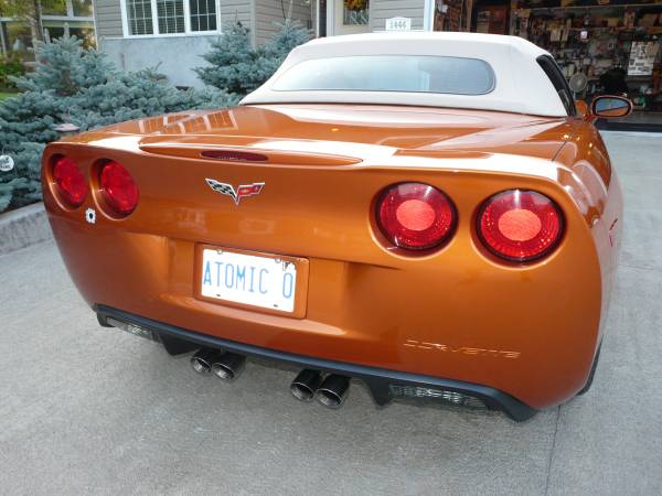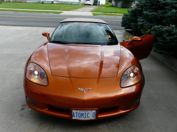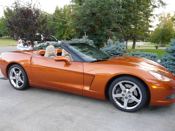 2ND TO NONE KEPT IN CLIMATE CONTROLLED GARAGE. ONE OF THE NICEST 2007 CORVETTE CONVERTIBLES WITH A STUNNING RARE COLOR AND MOST SOUGHT AFTER OF PREMIUM ATOMIC ORANGE TINTCOAT METALLIC (SIMILAR TO A COPPER BURNT ORANGE COLOR) VERY RARE STUNNING EYE POPPING COLOR. LIKE NEW, AWESOME CORVETTE CONVERTIBLE. THIS 2007 CORVETTE CONVERTIBLE IS GOT TO BE ONE OF THE NICEST CAR LOW MILES APPROXIMATELY 1,600 to 1,900 MILES PER YEAR. NEW BATTERY, FRESH OIL AND LIKE NEW UPGRADED TIRES WITH CHROME RIMS.(PREMIUM ATOMIC ORANGE METALLIC TINTCOAT. )