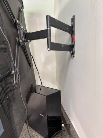 For sale is a 54" Samsung curved screen television with matching curved Samsung sound bar and Samsung wireless subwoofer. The tv is attached to the wall with an adjustable mount which is included. Call Steve at 218-four six one-6013 for information or to see the tv. $150 cash only.