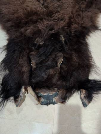 This is the full hide of a ranch raised buffalo from down in Wisconsin. It has the full face and tail intact. It has a few bare spots but the hair is thick and full everywhere else. Please call or...