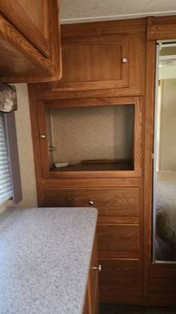 Nice very comfortable camper with plush beds that were purchased separately. Very cold air, warm furnace. Has microwave, shower, oven, stove top, fridge, freezer, stereo and TV hook ups. Lots of storage. will consider trade for something smaller but similiar as we are ready to downsize.