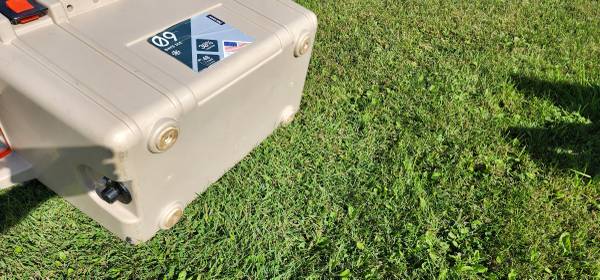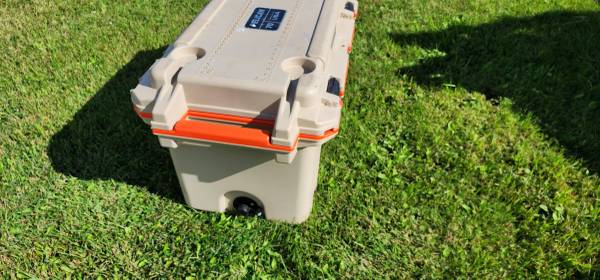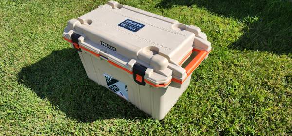 Pelican 70 qt Elite Cooler in Tan and Orange
