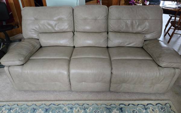 Beautiful lightly used electric reclining leather sofa. Works like new, always covered, no stains or scratches. We are a pet friendly & no smoking home. The backs disassemble for easier...