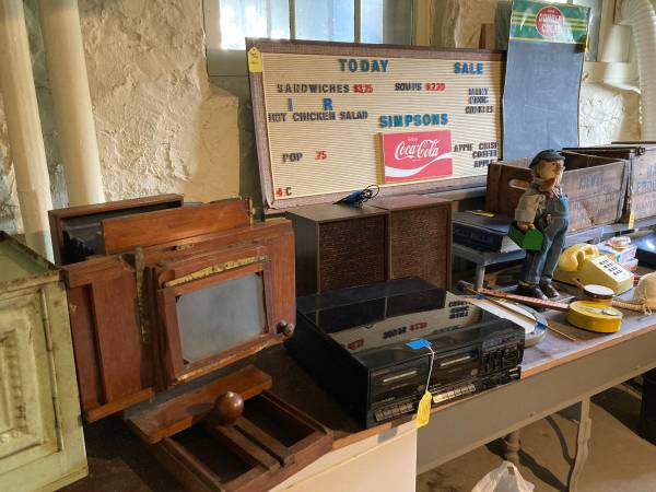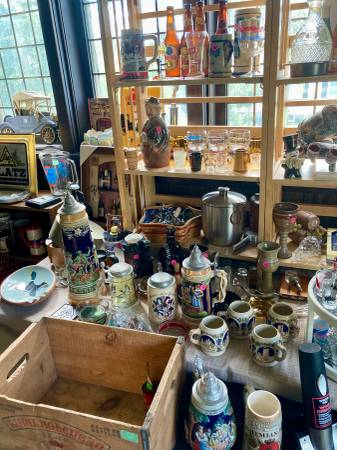 Fishing, Wine Maker (lots of wine related stuff), Massive Collection of Steins (Brewery, German, more), Advertising Signs, Primitives, HUGE Vintage Angel Collection, Large Crocks (8, 10, 20)