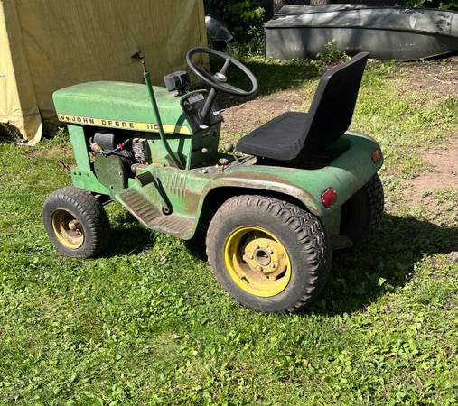 Solid old John Deere lawn tractor. Used for many years shifting trailers around on my property tires all hold air, battery is good, always starts even in subzero weather. located in the western end...