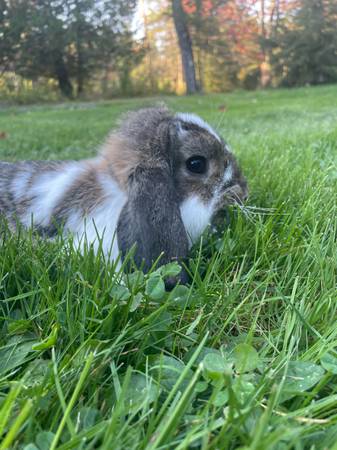 Four Lop bunnies for sale, they are $50 apiece. They are super easy to litter train and really friendly. They can be inside or outside bunnies. There are males and females in the litter. They are about a month and a half old. They don’t need a lot of attention, but they will become closer and more friendly if you do hang out with them. They are not purebred lops, they are half mini lop and half Holland lop. These pictures are a bit old so they are a bit bigger now and their ears have flopped down. There are three brown ones and one white and brown one. Email me if you’re interested.