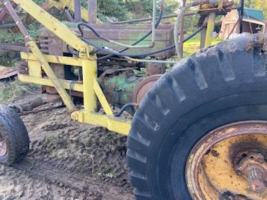 JOHN DEERE MODEL 'A' WITH HENRY LOADER THAT TURNS OVER BUT HAS NO OR LIMITED SPARK SO DOES NOT RUN BUT AS I SAID THE ENGINE TURNS FREELY. THE FRONT END WAS CHANGED FROM NARROW FRONT TO WIDE FRONT THAT FOR THE ERA SEEMS TO WORK WELL. THE REAR TIRES ARE FRONT END LOADER TIRES AND ARE VERY STIFF. THESE MAKE THE TRACTOR HEAVIER THEN A NORMAL JD MODEL A. PRETTY MUCH A UNIQUE TRACTOR.I THINK THIS WILL START, MAY HAVE TO RESET POINTS, PUT GAS IN IT, AND MAYBE PULL IT.