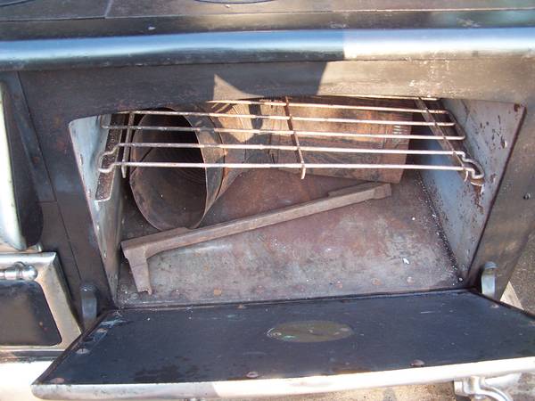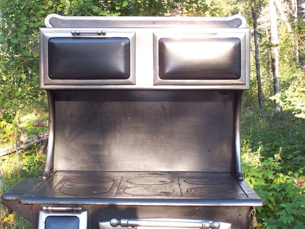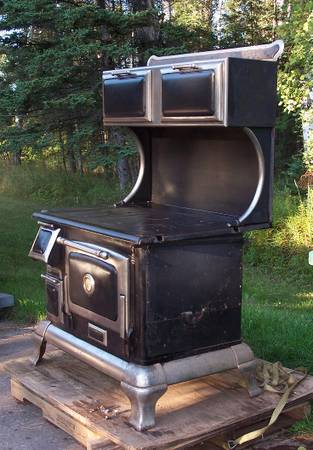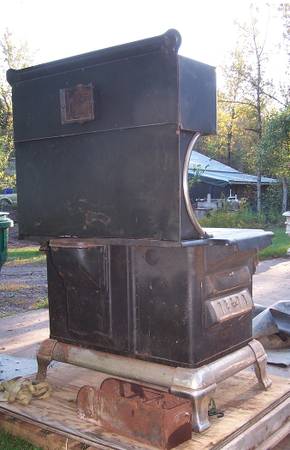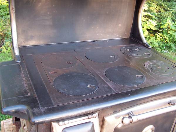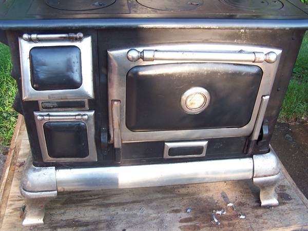 Antique black and silver Copper Clad Maileable Range, wood cook stove and oven. AS -IS $500 cash.