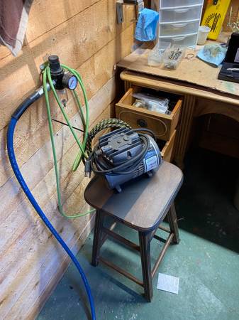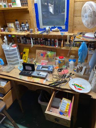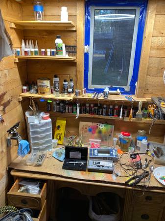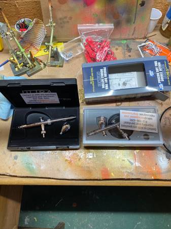 Two new air brushes and compressor all the paint and fishing hardware for painting lures.