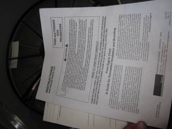 Like new (used once) incubator. Holds up to 48 chicken eggs. Made in USA, Hawkeye Steel Products Inc. Houghton, Iowa.