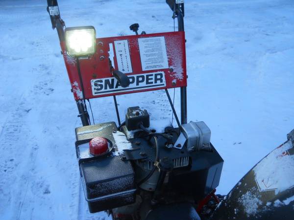 I have for sale a good used Snapper Snowblower. It is powered by a Tecumseh 10hp engine with recoil and electric start. The clearing width is 24". This has tire chains that will give you great traction. This was just serviced with fresh oil, spark plug, auger belt, carburetor cleaned & kit installed. This has a headlight. This is a great running unit & really blows the snow. CASH only for payment.