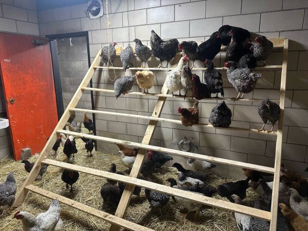 Hatched spring and summer laying hens and roosters Many breeds