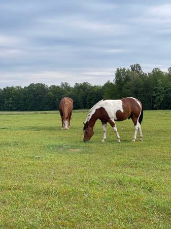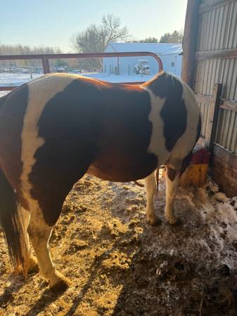 3 year old registered paint gelding, selling because needs more work and time that I don’t have time due to school. I’ve owned him since 2023 since he was a year old for hopes of him getting a good bond with me but I don’t have the time anymore, I worked with him for the first year very well, he’d be a great horse for someone who is looking to out some time into him. He’s been in our pond a few times swimming with my other horses while we were riding, crosses bridges, he will pretty much do anything as long as you talk him through it and be patient. Loads good, stands for farrier, halter broke, we just started working with him on saddle and everything this past summer but he isn’t fully comfortable. He is overall a great horse and hate to see him go.