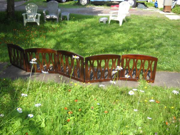 Nice wooden indoor free standing pet or dog fence gate measures 2' tall and 10' total full length or shorter depending on set up. Selling for only $65. Also dog cage selling for only $69....