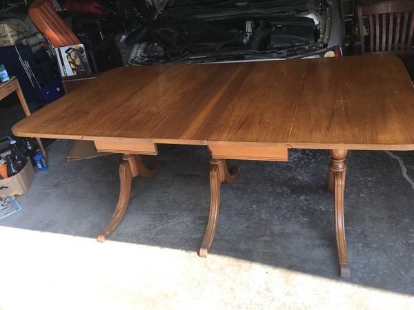 Very nice antique drop leaf table. Looks like mahogany veneer. W one extension. Opens to 70” x 40”. A few nicks but overall great condition!! $150. Call/text 719-four65-6570. Superior.