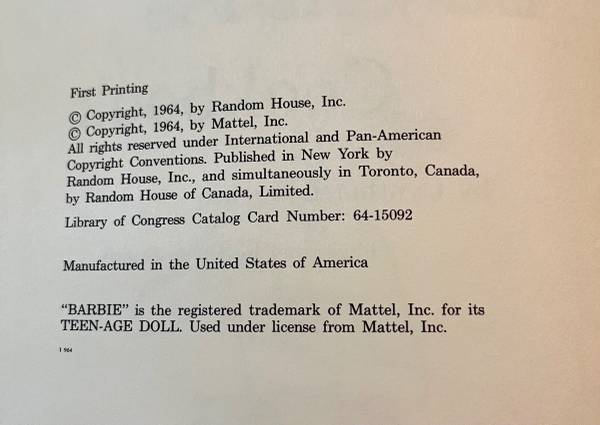 Barbie Easy-As-Pie Cookbook - 1st Edition. Copyright 1964. It is in great condition. A few pages have a small spot at the bottom of the page (see picture), but most pages have no marks. It has 114 pages of recipes, illustrations, and a bit of a story throughout. A great book!