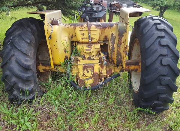 I've got a International Harvestor I2500D-A industrial tractor for parts. This is similar to the 574 I'm told and has the D-239 diesel engine. This was a running tractor until it threw a rod so now has a hole in the block which is how I bought it for parts. I have what I need off of it so the rest can go. Hours on the tach read 3015, but since I don't know its full history I consider the hours on it to be unknown. Engine top end like the head, intake and the like should all be good yet. Also still has good, relatively straight fenders with lights, radiator, fuel injector setup, steel hydraulic and fuel lines, fuel tank, starter, and rear end etc. This originally had a backhoe and loader but both have already been sold. Willing to sell all that remains for $1400 or any part (down to $5) or assembly off of it -except the rims and tires as I want it to be easy to move- as it sits. I will consider selling the rims and tires with a larger assembly (rear end or front axle) if someone would like those parts.