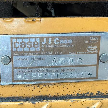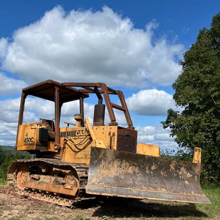 Case 450C Dozer. 6-way blade. Cummins turbo diesel engine. 4-speed power shift transmission. 16” track pads. 5 rollers. Open ROPS. Good condition throughout. Real good undercarriage. I don’t think this crawler has had much use!