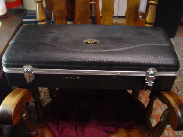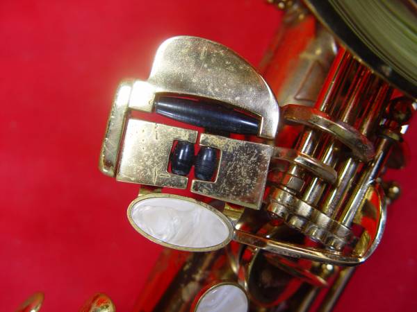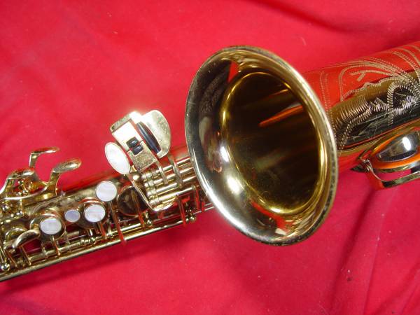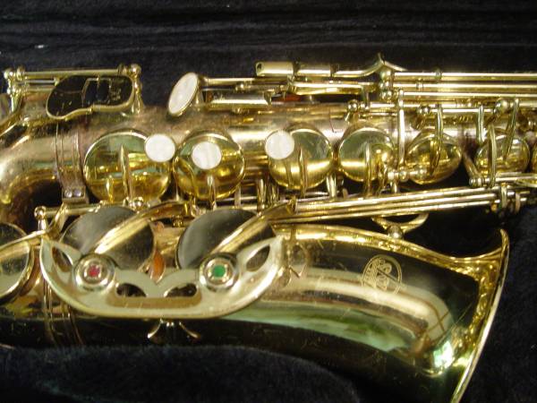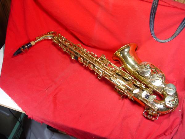 Sky gold lacquered alto Saxophone in great condition. Plays top to bottom. Modern keywork. No dents, some minor scratches. Hard case has seen better days (handle gone, etc.) but still protects horn.