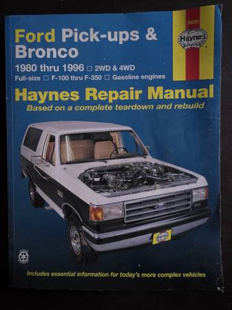 Chilton Ford p/u and bronco manual. 1987-1996. Haynes pick-ups and Bronco 1980-1996. $10. Text 507twonineone2five7five or CL email.