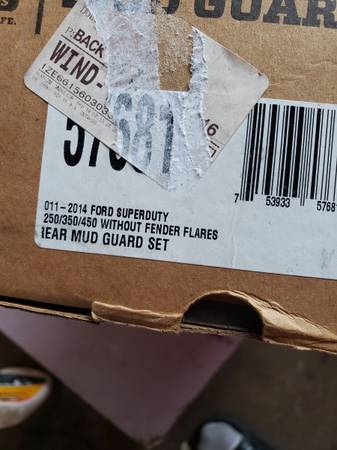 Husky rear mud guards Part #:57681 11" W x 9 3/8" L (From the bottom of fender to bottom of mud flap) new in the box. $30obo email or txt 7six33five29sixsix4