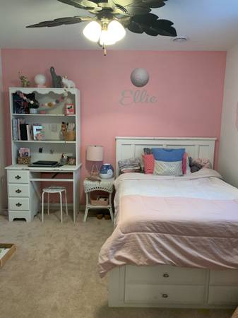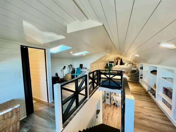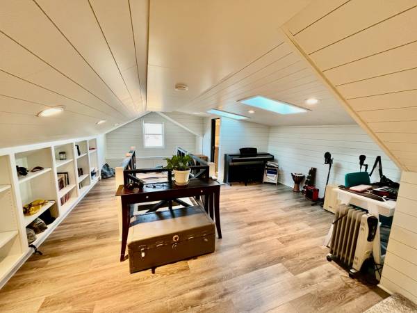 2022 walk up attic expansion includes skylights, custom built in cabinetry, and half bath.