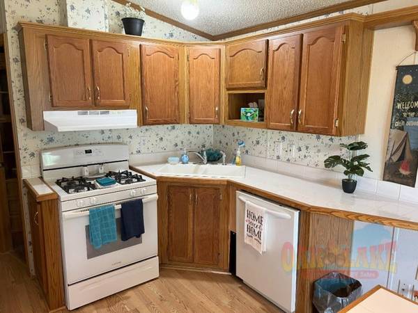 Let this Lee Baycrest park model be your second home! This park model/house features three additions, three bedrooms, a dishwasher and a washer & dryer! A covered porch welcomes you as you arrive to your new camping adventure. When you walk inside you will find a spacious entryway/living room with a closet and counter with cabinets and drawers. Go up a few steps and you will find the first bedroom with a closet, end tables and built in shelves. The bathroom with a corner shower, toilet and vanity is nestled between the bedroom and kitchen. In the kitchen you will find a large double door refrigerator with a bottom drawer freezer, a microwave, range and dishwasher. No more having to hand wash those pesky dishes which will allow more time to have fun! There is also a large center island with storage. The dining room area has some built in shelving and cabinets. Next you will find the utility room. There is a water softener, water heater, washer, dryer and a deep sink. Just off of the utility room is a pantry/closet. The second bedroom is located next to the utility room and has a closet. As you head to the back of the park model there is an added on living room and third bedroom with a walk in closet. This park model has a total of three built on additions. It also has a car port over a concrete slab and a large shed. This is a seasonal residence only. Newer roof, and interior walls recently painted.