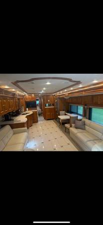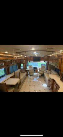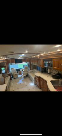 Class a diesel pusher, 425 hp Cummings, Allison transmission, powerglide chassis, four slides, sleep six comfortably, master is a king size select comfort, three upgraded, smart Roku TVs, residential fridge, power shades, power awnings. In 2024 new steer tires, airbags, and all batteries. Lots of upgrades on this RV. It is an extremely good shape. Paint is near flawless been serviced regularly, 86,000 miles. This RV is always stored in heated climate controlled building when not in use. $120,000 or best offer