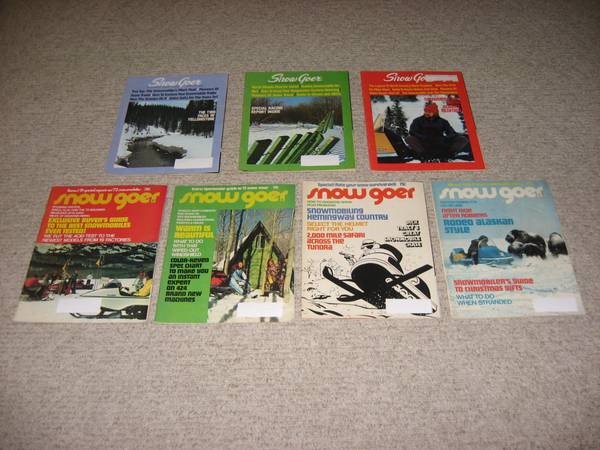 For Sale: Complete set of seven 1971 Vintage Snow Goer magazines. This includes January, February, March, September, October, November and December issues of the 1971 Snow Goer magazine. Snow Goer did not publish their magazine during the summer months. These are in good readable condition and would be a nice addition to your collection. Lots of pictures, articles and ads. Looking to get $100.00 plus shipping for all seven of them. These are selling for $20.00 to $30.00 each plus shipping on other sites such as eBay.