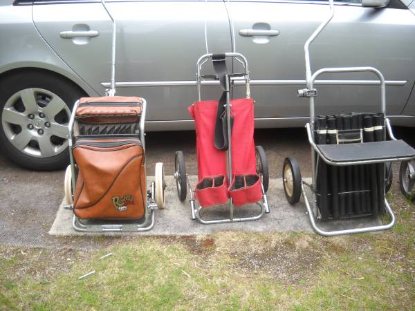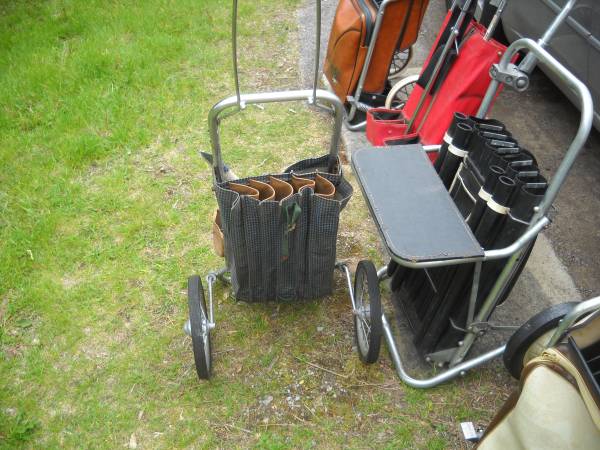 Light weight foldable Golf bag cart. I have five of these selling for only $35 to $65 each. Also newer golf balls selling for 25 cents each and golf bags selling for $25 to $65 each and clubs for...