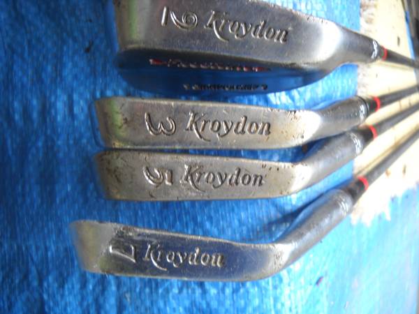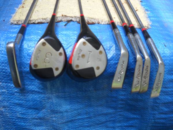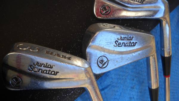 Nice matching set of (RAM Junior Senator) clubs selling for only $10 each club, { Bags for $25 to $35 each}, (I have a set of seven Kroydon Adult clubs selling for only $120). This set includes #1 and #3 woods and five irons. Also other clubs selling for only $10 to $35 each club, newer golf balls for 25 cents each. Golf umbrella for $15. Cell^^2l8**22l*952three