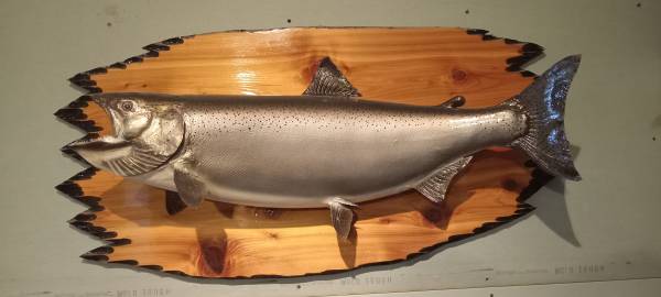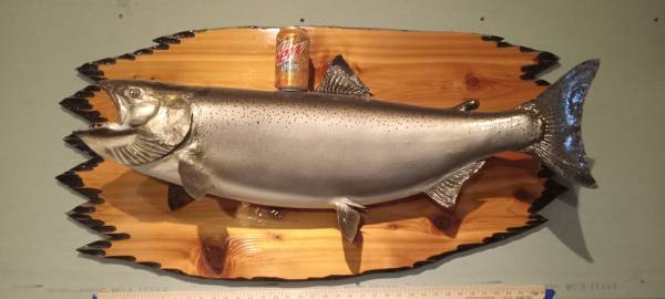 Taxidermy King Salmon (chinook) Beautiful professional Taxidermy wood plaque Approximate size of fish is 36 inches long & 11 inches tall Approximate size of plaque is 48 inches long & 21...