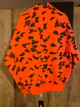 Blaze orange camo hooded sweatshirt size XL, $15, call or text.