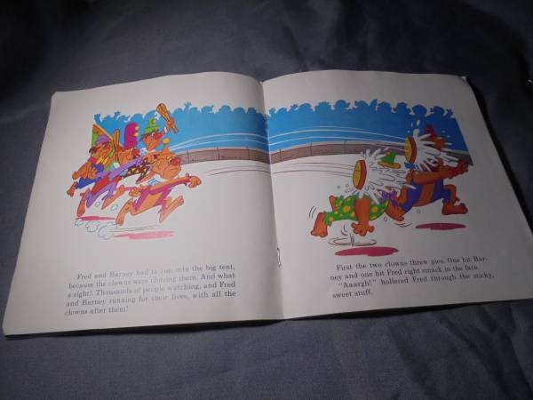 "Fred and Barney in Circus Fun" is by Horace J. Elias, who wrote tons of children's books starring Scooby Doo, Huckleberry Hound, Yogi Bear and more! Fred and Barney go to the Rockling Bros. Circus...and live out their childhood dreams of becoming Circus Clowns...and, of course, trouble happens!