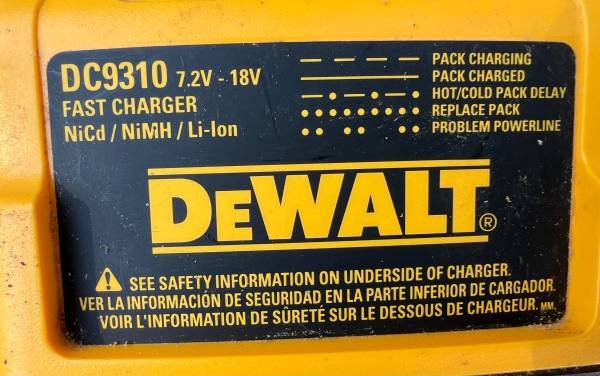 DeWalt 18V Charger (DC9310), 7.2v-18v Fast charge. NiCd / NiNMH / Li Ion. $5