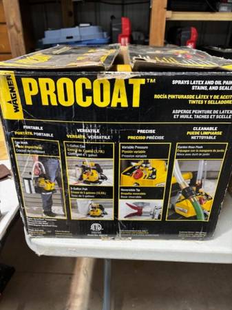For sale is a Wagner ProCoat 2800. The owner says it is in good operating condition. All the parts appear to be in the box. $50 OBO. Call or text Steve at 218 four six one 6013.